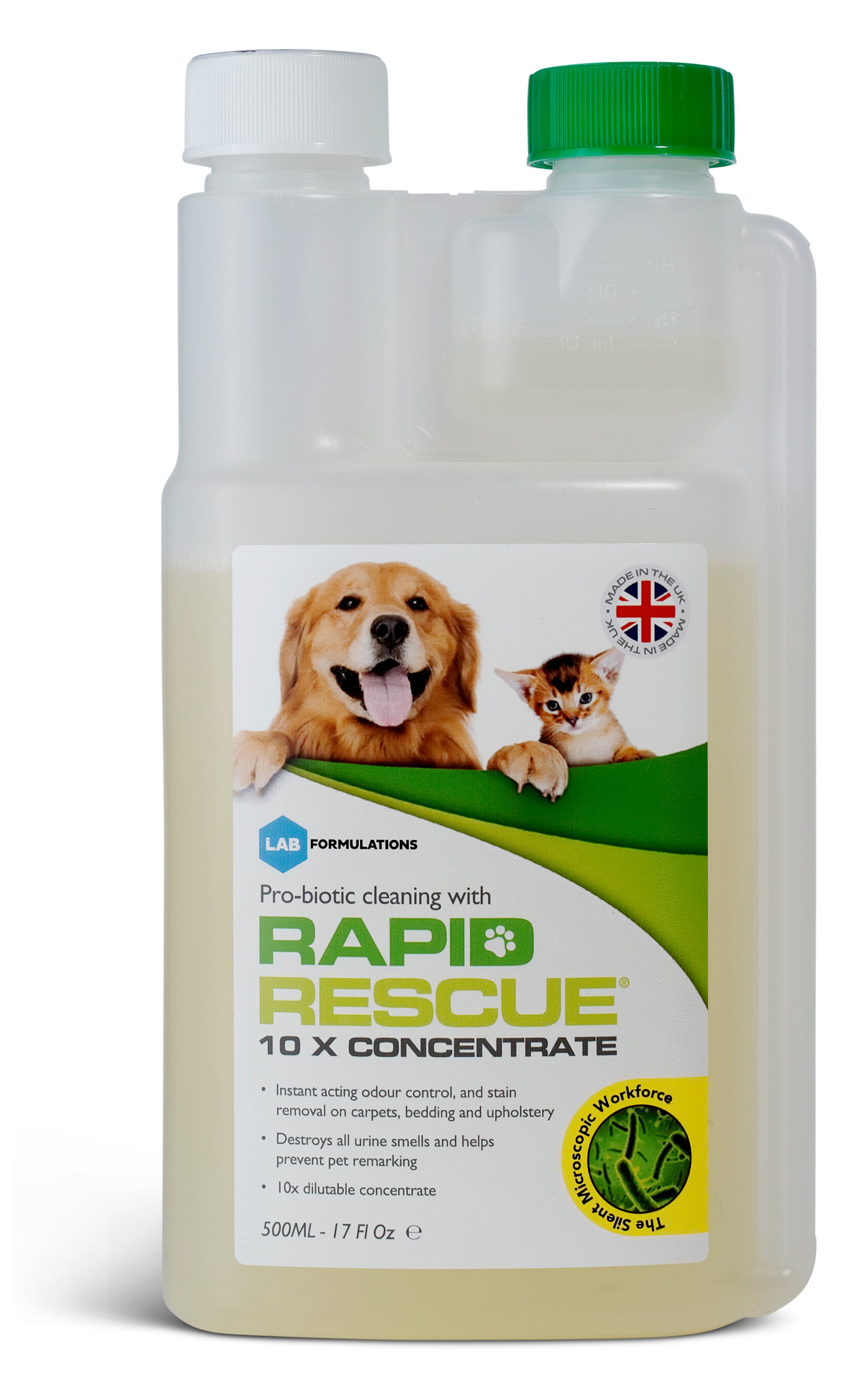 Rapid Rescue 10x Super Concentrate - we now offering an easy to use super concentrate in a convenient 500ml measuring bottle that enables fast effective refill of used trigger packs. This eliminates plastic packaging waste thereby meeting our company green objectives whilst also offering best value. If used as directed and added to empty Rapid Rescue trigger bottles you can make up to 10x750ml refills - Probiotic Green Performance at its best!